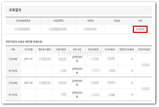 ※ 직장가입자 보험료 조회하는 방법은 신청란에서 '직장가입자 보험료 개인별 상세내역 예시'를 참고